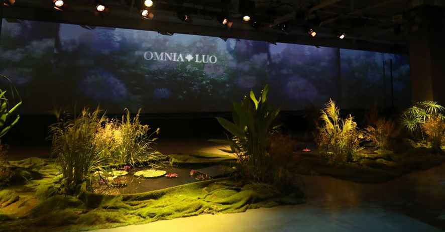 现场手碟演奏拉开了欧柏兰奴2019春夏新品发布会的序幕。氤氲的气氛包围着全场,3D高科技全息投影效果,让人身临其境的进入到的花之秘境的世界。